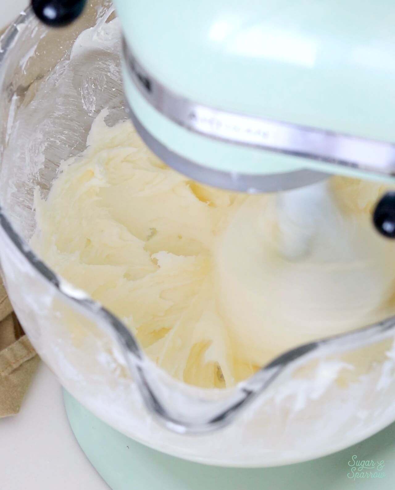 Step 2: Using a stand mixer with the paddle attachment, beat the butter until it’s creamy and pale. This takes about 5 minutes.
