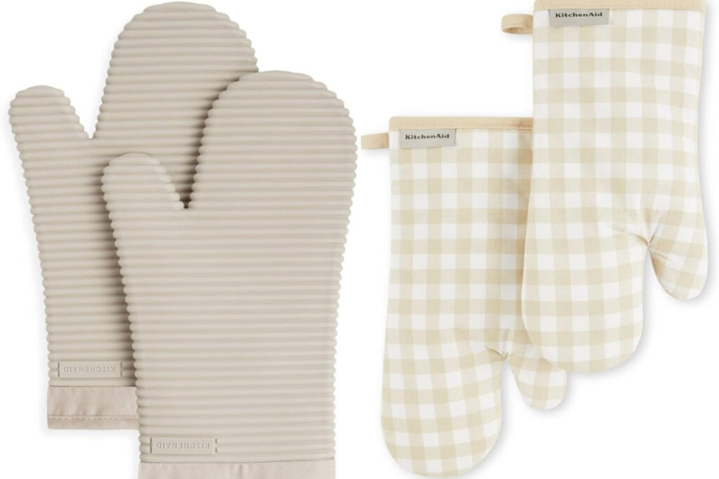 These KitchenAid Silicone Oven Mitts and these Gingham Oven Mitts