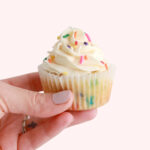 Gently fold the flour-coated rainbow sprinkles into the cake batter by hand, then divide evenly between the prepared cupcake tins (no more than 2/3 full) and bake for 14-18 minutes, or until a toothpick inserted comes out clean. Transfer the cupcakes onto a wire rack to cool completely before applying any frosting.